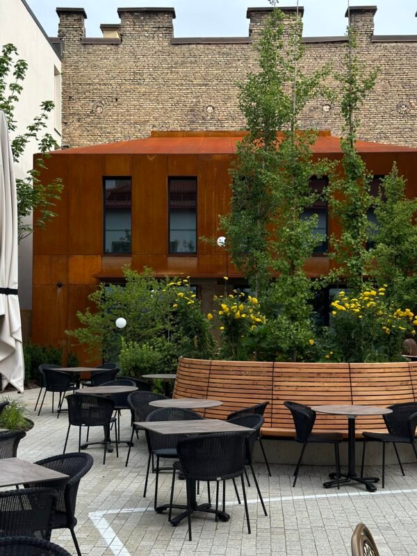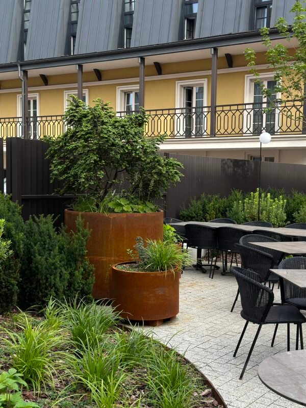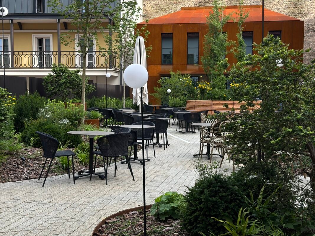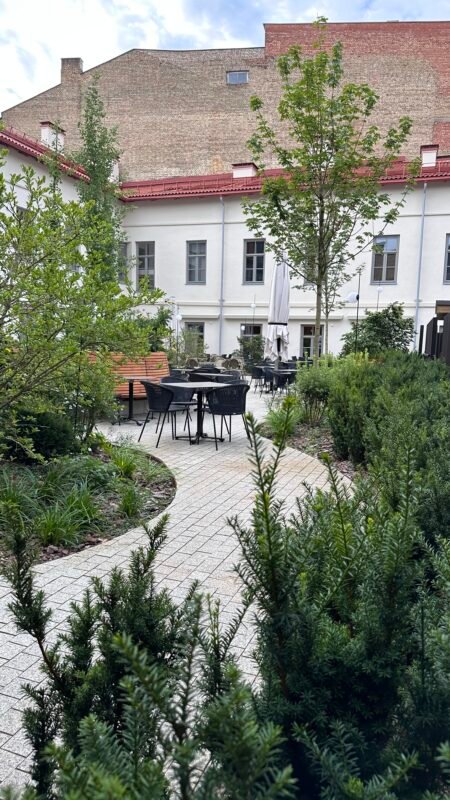 Įrengėme matomus ir nematomus gerbūvio sprendimus: suklojome granitą, įrengėme požeminę medžių šaknų infrastruktūrą ir suformavome mažojo bei didžiojo kiemo augmeniją.